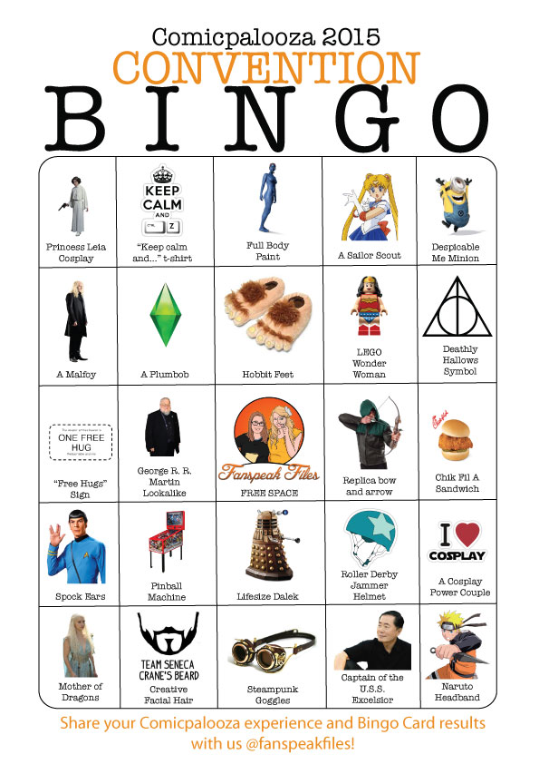 We invite you to download the card and join us on this visual scavenger hunt to commemorate your Comicpalooza experience. Be sure to take pictures, tweet us @FanspeakFiles, or share your favorite parts of Comicpalooza 2015 with us in the comments below.