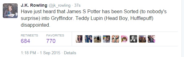James has been sorted into Gryffindor, while Teddy Lupin has been crowned Head Boy for Huffelpuff!