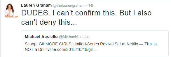 Many of the original actors are rumoured to be returning (sans Melissa McCarthy, sadly), and few have had anything to say about the matter as of now. But, Lauren Graham did release a tweet yesterday that seems to lean more towards the “OMG YES!” side of of the story.