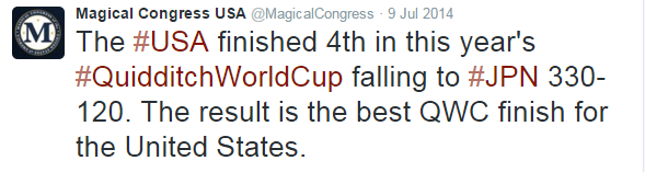 The American Quidditch team didn’t make it to the final in the 2014 World Cup, but MACUSA made sure to include the team’s seeker in their coverage.