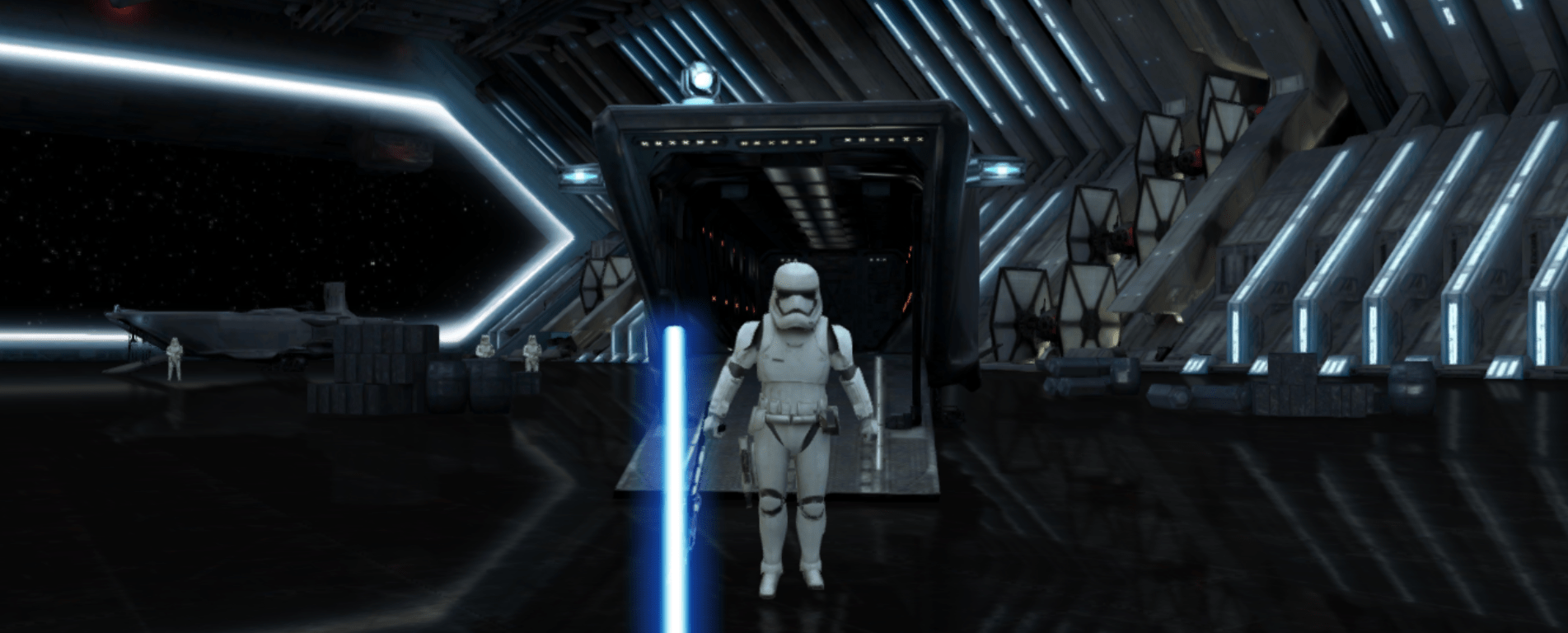 By syncing your smartphone through the URL provided on the site ( type g.co/lightsaber/quktj in the internet browser on your phone), you become a member of the resistance and fight your way through stormtroopers with your trusty lightsaber.